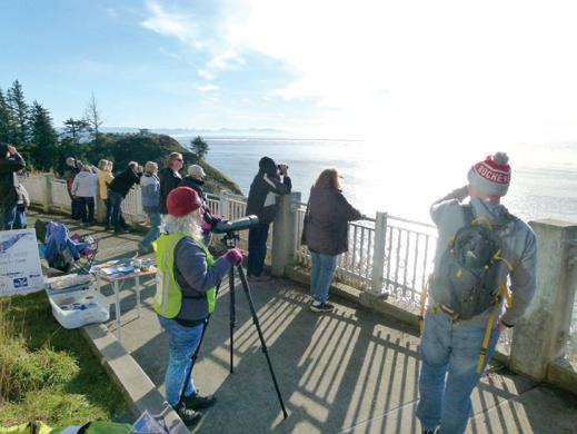 A map of volunteerstaffed sites is available online on the official event webpage: https://oregonstateparks.org/index. cfm?do=thingstodo.dsp_ whaleWatching.