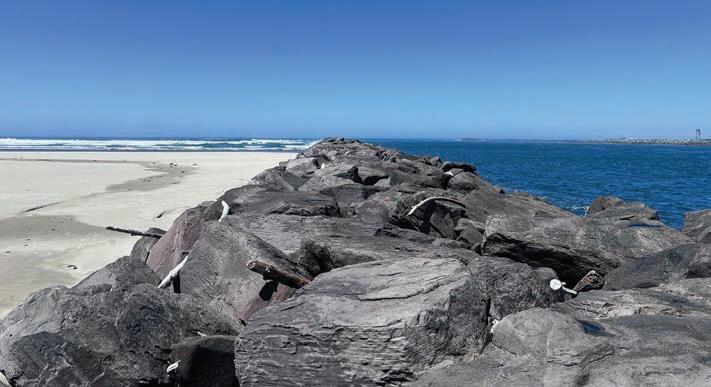 Work on the $52.7-million project, funded by the 2021 Infrastructure and Jobs Act, began in 2024, with Trade West creating a staging area at Kincheloe Point and haul road to the root of the South Jetty and placing around 5,500 tons of stone in a 600foot section by September.