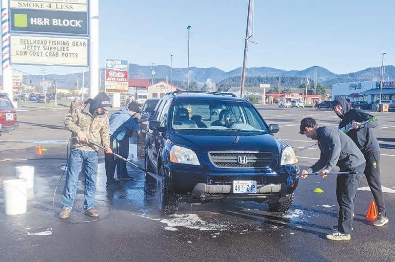Charity Drive kicked off last Friday with events that raise money all over town. Pictured are Tillamook High School Sophomore team members washing cars at Main Street Pizza in Tillamook Saturday morning. See a complete list of events and other information about Charity Drive on page A8. Headlight photo by Joe Warren
