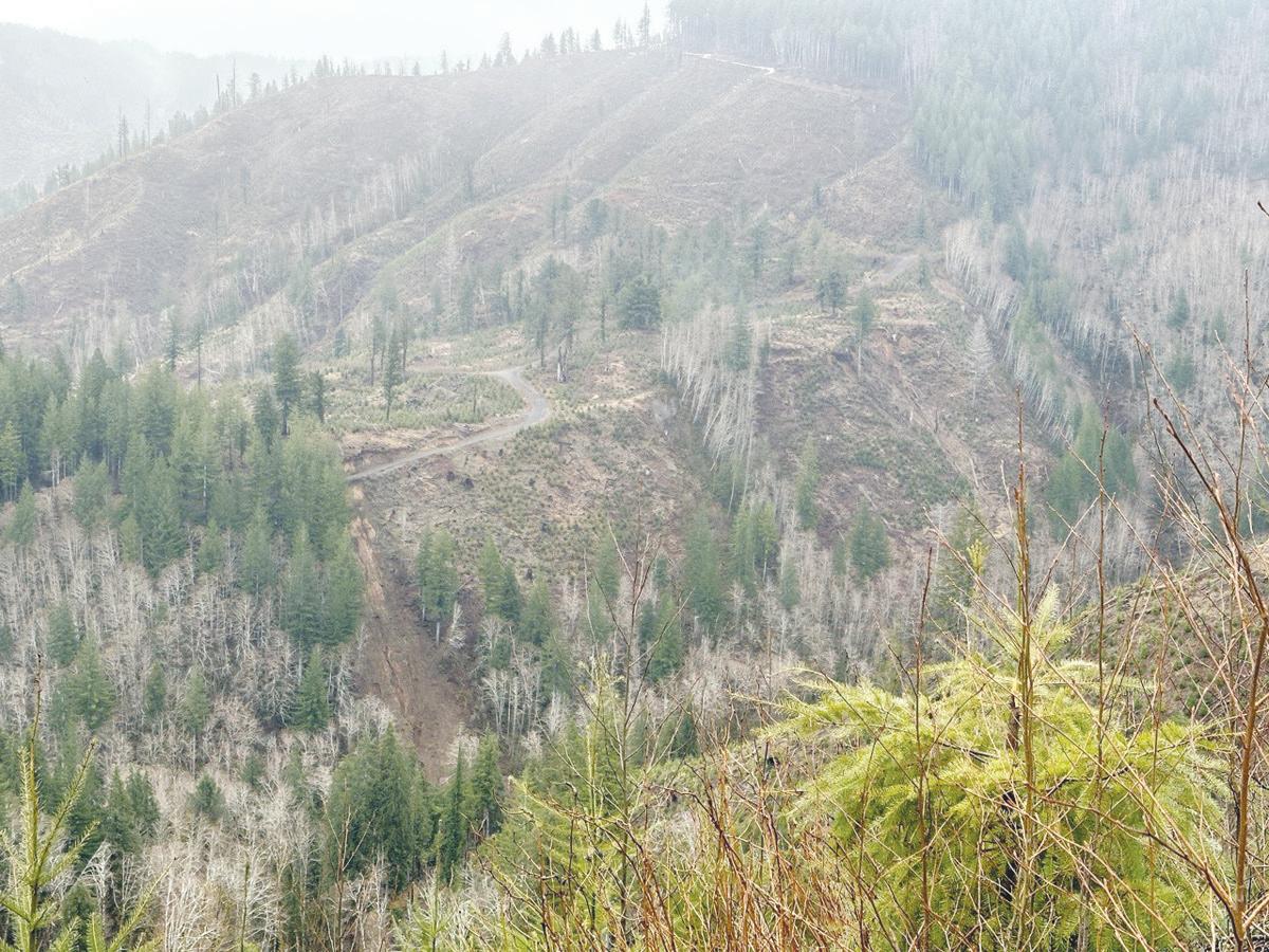 A series of landslides above the Kilchis River in the Star White Timber Sale resulted in the lawsuit brought by the Center for Biological Diversity and others. The suit claimed that forestry activities had contributed to slides like these and debris flows throughout the Tillamook and Clatsop State Forests, harming coho salmon. Headlight photo by Will Chappell
