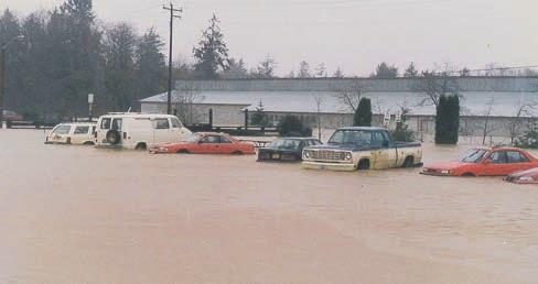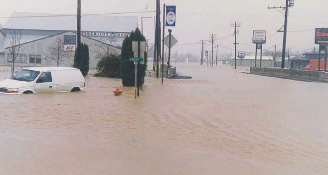 Looking north toward Rosenberg’s across Hoquarton Slough from Front Street during the 1996 flood.