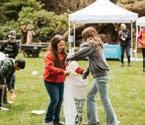 Students participate in a simulated marine debris cleanup activity during the Clean Water Festival at Twin Rock Friends Camp.