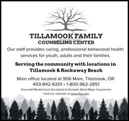 Saturday (3:30 – 4:30 p.m.) ST. JOHN’S UNITED CHURCH OF CHRIST No matter who you are or where you are on life’s journey, you are welcome here.” 602 Laurel Ave., Tillamook, OR 97141 (503) 842-2242 Sunday Worship 10:30 a.m. Office Hours Mon-Thurs 9 a.m. to 2 p.m. Follow us on Facebook: St. John’s UCC Tillamook Handicapped accessible TILLAMOOK UNITED METHODIST CHURCH Sunday Service 11 a.m Pastor AJ Wollf/Lynne 3803 12th St., (503) 842-2224 Office Hours: 10 a.m. to 2 p.m. Mon./Tues./Wed. ADA accessible. Contact the church office (503) 842-2224 if transportation is needed. Worship online www.TillamookUMC.org. All are welcome and cherished here. Call 503-842-7535 or email headlightads@countrymedia.net to list your church in this directory