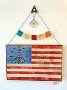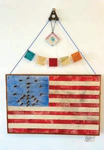 LEFT TO RIGHT: “Hard Times” by Deborah Paul / “Tweeterpated” by Melonie Ferguson / “Flag with String Attached” by Anthony & Vistoria Stoppiello / “Rain Dance” by Kim Koch