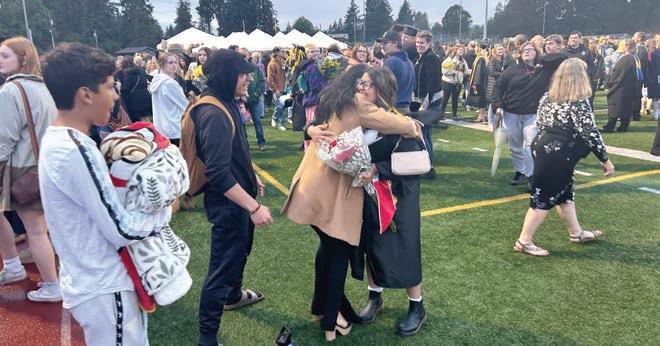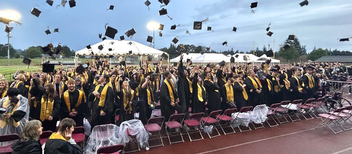 The St. Helens High School seniors toss their caps in the air at the conclusion of the 2023 graduation ceremony.