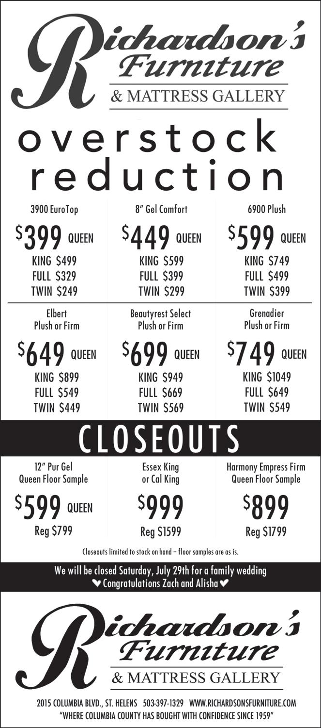 Garage Sale Saturday only July, 22, 8:30 a.m. to 3 p.m. 750 Old Portland Road, St. Helens. Dishes, period glassware, Fitz and Floyd, Lenox, Fenton, kitchen utensils, cosmetics, books, fabric, a new door and windows, tools, fishing tackle, and misc. Huge multi-family/ downsizing sale July 21-22 from 9 am - 3 pm. Tools, holiday & home decor, childrens & womens plus size clothes, outdoor items and so much more. 33725 Sunny Hill Ln., by the fairgrounds. HUGE SALE Tools, camping, fishing, harware, Star Trek and Star Wars collectibles, antiques, furniture, clothing, baseball cards, luggage, Beanies, MUCH, MUCH More! 1810 Front Place, Columbia City (near Pixie Park). Hours 9-5 Friday 7/21 and Sat. 7/22. Sun. 7/23 from 9-3. Estate Sale Sat. 7/22 from 8 am - 3 pm. Dishes, glassware, books, dining set, dressers, queen bed frame, toys, crystal glassware, Corningware, kitchen ware & misc. 35139 Maple St., St. Helens. Cash only. Parking in upper driveway or on grass on lane behind house. 706 Estate Sales 702 Garage Sales 702 Garage Sales 702 Garage Sales Paid Vacation Excellent pay D.O.E Yearly Bonus Steady Year Round Work Monday Thru Friday Paid Holidays HELP WANTED Quarry-Crushing Foreperson • Utility-Loader Operator Dump/Pup Driver • Equipment Mechanic/Operator BCX1996@gmail.com Rainier, Oregon 360.431.5599-Craig Classified Ads Deadline: Mondays by noon. Late submissions may not make the paper. Send subscription info to PO Box 1153, St. Helens OR 97051 Card No. __________________________________________ Exp. Date _________________ Name ______________________________________________________________________ Address ____________________________________________________________________ City __________________________________ State ________________ Zip _____________ Phone Number ______________________________________________________________ Enclosed is my check for $70.00 Bill my VISA/Mastercard Subscribe me to the: The Chronicle The Chief $70 a year in Columbia County, $90 a year for outside county SUBSCRIBE TO YOUR FAVORITE LOCAL COUNTY NEWSPAPER AND GET FREE ACCESS TO ONLINE NEWS Let us know what YOU think EMAIL YOUR LETTERS TO: CHRONICLENEWS@COUNTRYMEDIA.NET