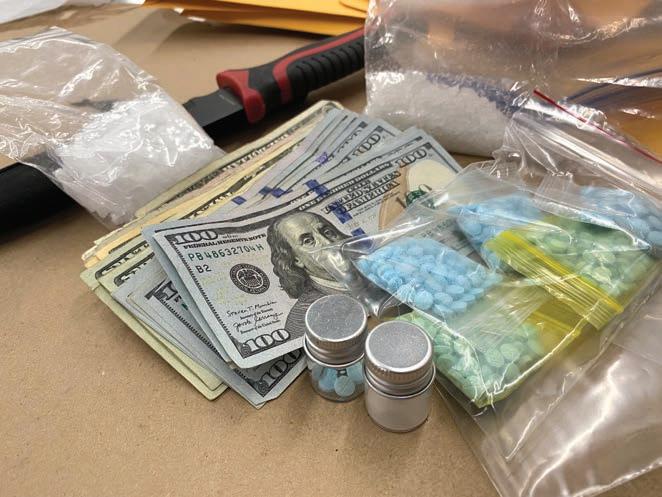 During the search warrant, officers located and seized a criminal quantity of fentanyl pills, fentanyl powder, and methamphetamine,