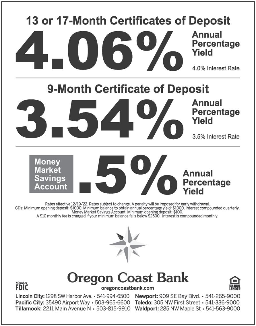 Lighthouse Anniversary PAGE 3 Support for local backpack program PAGE 4 January 10, 2023 Serving Lincoln City Since 1927 $1.50 Police Blotter 2 Opinion 6 Classifieds 7-8 Local ...................... 10 INDEX WEATHER TheNewsGuard.com WED. THU. FRI. SAT. SUN. MON. TUE. 50 /49 56 /48 53 /46 53 /44 51 /44 49 /44 52 /45 VOL. 96 NO. 2 R ck n