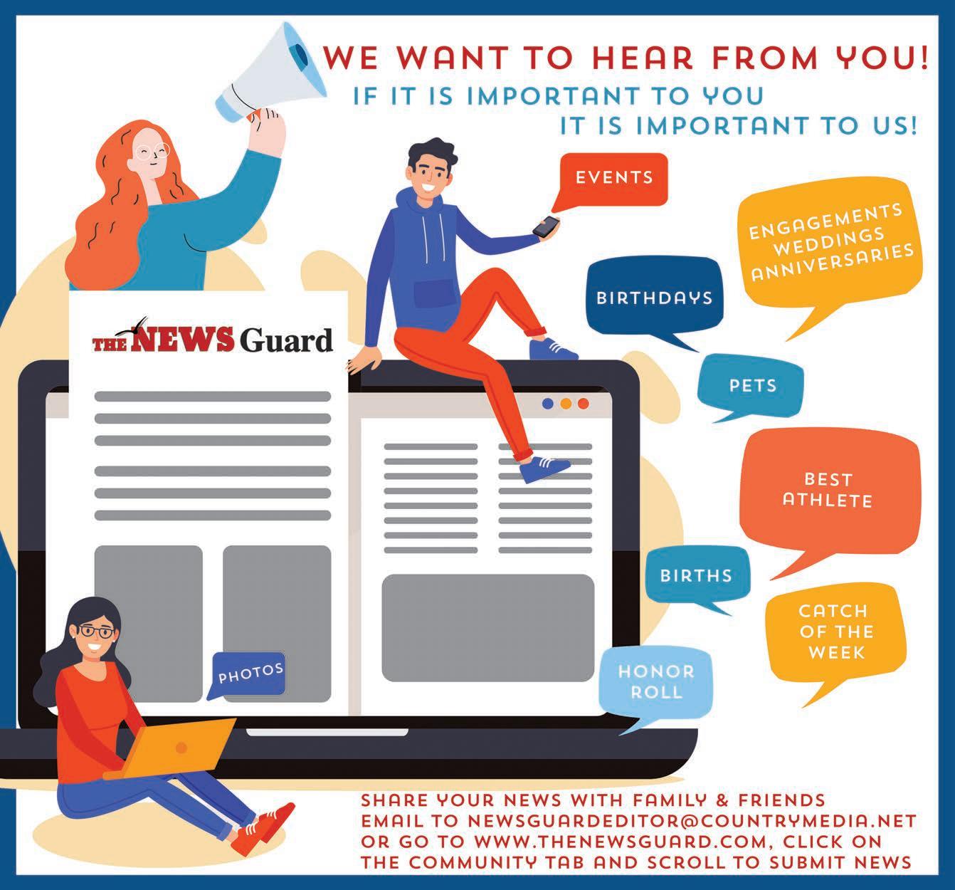If you have a community event coming up, send brief details with the date, time, location and contact phone/email to jruark@countrymedia. net