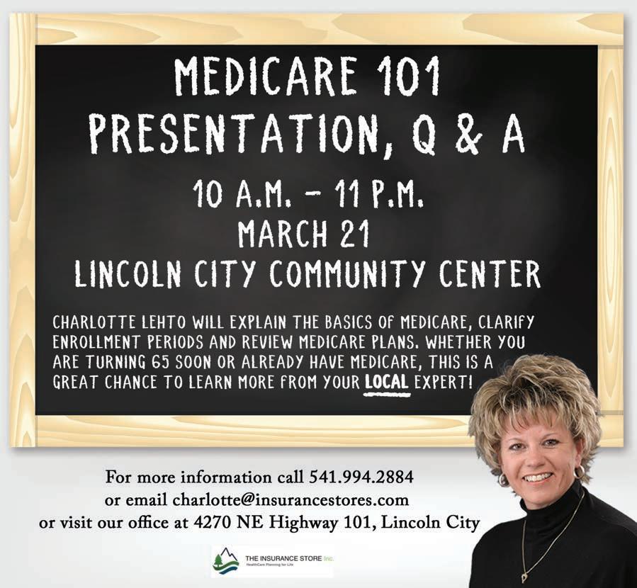 The Lincoln County Library District Board meeting will be held at 12 p.m. via Zoom and at the District office, 132 NE 15th in Newport. The meeting will include discussion of director recruitment and the 2023-2025 budget calendar. The agenda and packet is available on the District website: www. lincolncolibrarydist.org