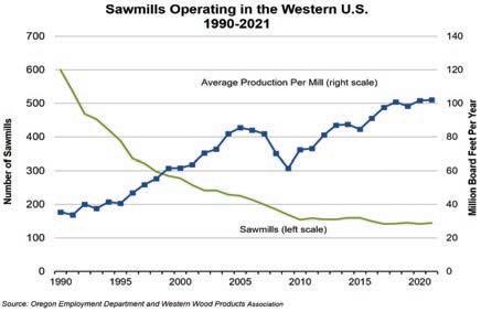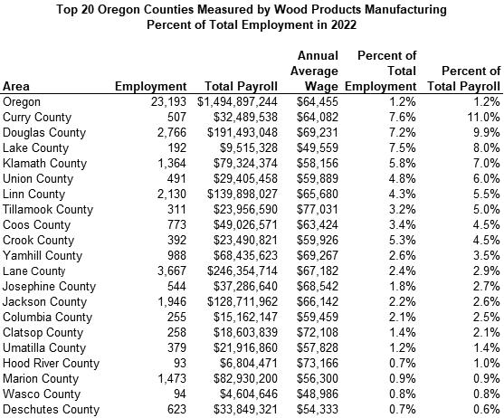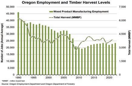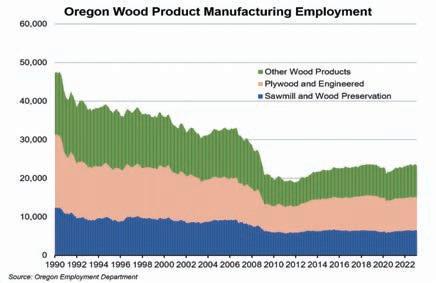 Employment projections from the Oregon Employment Department show that wood product manufacturing employment is expected to gain 1,000 jobs (4%) between 2021 and 2031.