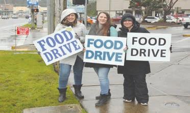 Top left: Volunteers brave the wind and rain during the Community Days Food Drive adjacent to McKay’s Market on Highway 101 in Lincoln City.