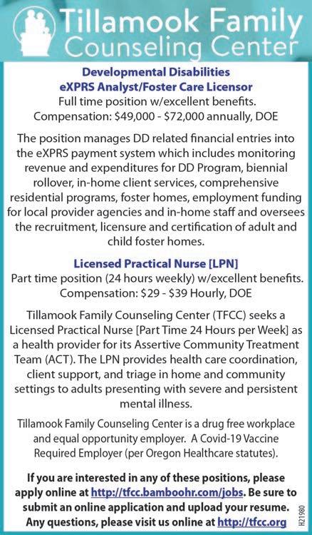 TFCC is a drug free workplace. A Covid-19 Vaccine Required Employer (per Oregon Healthcare statutes). Send a letter of interest to HR fax (503) 815-1870, mail at address above or email to jobs@tfcc.org