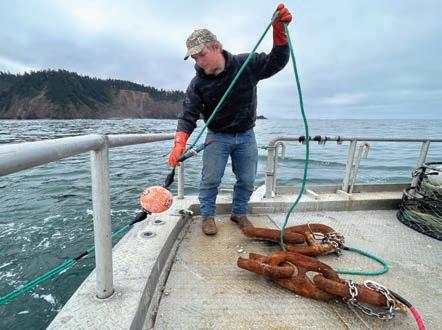 ODFW photo: Logan Browning from the F/V Lady Lee sets an oceanographic mooring at the Cape Falcon Marine Reserve’s comparison area at Cape Meares near Garibaldi.