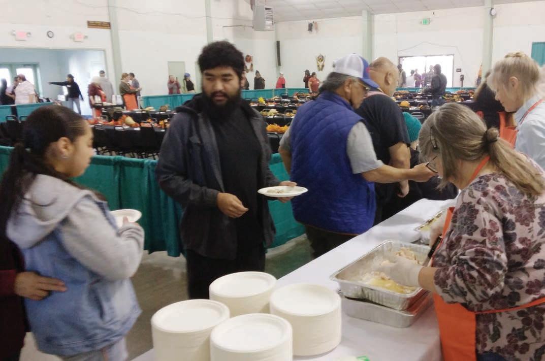 Close to 600 people came to the Del Norte County Fairgrounds on Thanksgiving to celebrate with a community meal served by more than 100 volunteers.