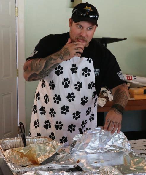 It was a big weekend for the Del Norte County Sheriff’s Office, with an emphasis on helping the department’s K-9 program. On Friday, Walmart made a $3.500 donation to the K-9 program, part of Walmart’s ongoing grant assistance to agencies that help Del Norte County. On Saturday, the sheriff’s posse hosted a golf tournament as a fundraiser that drew a big crowd. During the golf tournament, Deputy Kenny Fahndrich served barbecue to those in attendance.
