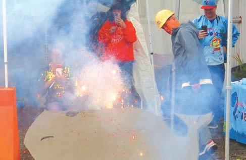 As in previous years, rain seemed to keep folks from coming out to attend the Exploding Whale Festival but those who were attending had a great time. Most talked, welcomed others and posed for photos with Flo and Rence, unofficial whale mascots.