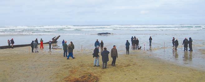 into the ocean. After talking to State Parks officials and snapping a few more photos, I walked away in a state of profound sadness, knowing it would likely be euthanized and that I’d witnessed its final moments alive. Initially, I didn’t want to put the light-hearted exploding whale celebration story and this one in the same issue- It just didn’t seem right. However, like the 1970 whale, this one might offer a chance to learn what not to do. As of this writing, results of a necropsy were not available and it’s not known if other factors might have contributed to its beaching. Hopefully, the knowledge will result in some sort of change that will protect marine mammals a bit more, result in less junk in the ocean or just make us more mindful about the hazards we create for these gentle, giant, intelligent creatures.