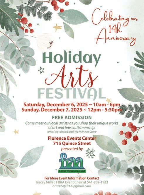 Visit Serene Abundance Studio Space at 148 Maple Street in Old Town Florence on Saturday, December 13th for a day of creative inspiration. Featuring a Layered Hearts Expressive Art Workshop from 11am-2pm, followed by a Holiday Pop Up Art Market from 3 to 5pm, with seasonal refreshments. To learn more and register, visit sassflo.com/ events, or call 541-590-3877