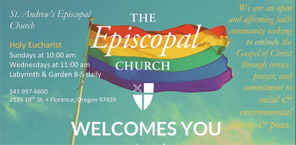 Worship Services 10 am • Bible Study 9:00 am Pastor Steve Waterman 85294 Hwy. 101 S. – 997-8038 Facebook.com/ResurrectionLutheranChurchFlorence