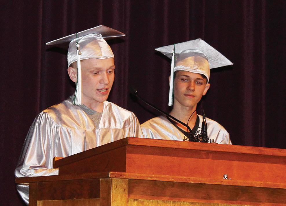 Buddy Lockwood, left, and Samuel Cagley address their fellow students during graduation ceremonies.