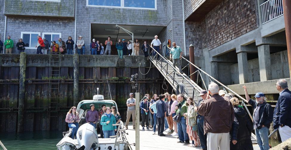 Oregon Institute of Marine Biology students and community members assembled on the OIMB dock for the christening ceremony.