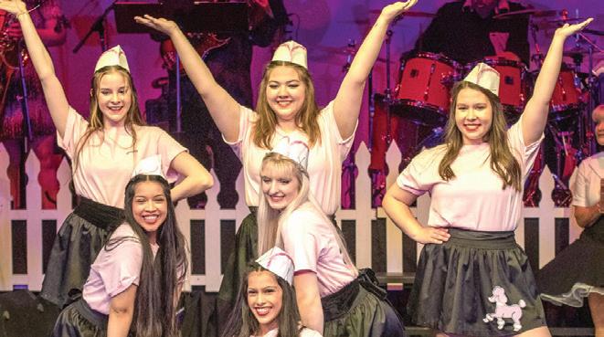 The musical numbers between scenes of the play feature dazzling ladies and dapper gents high-stepping across the stage. These interludes, also known as olios, keep the audience engaged while the backstage crew changes the backdrops and sets props for the upcoming scene. Directing the 20-member olio cast this year is Chloe Stevenson, who has been attending Sawdust Theatre productions with family since she was an infant. She’s in her 13th season as an actress and has been involved with the olios for the past 12 years.