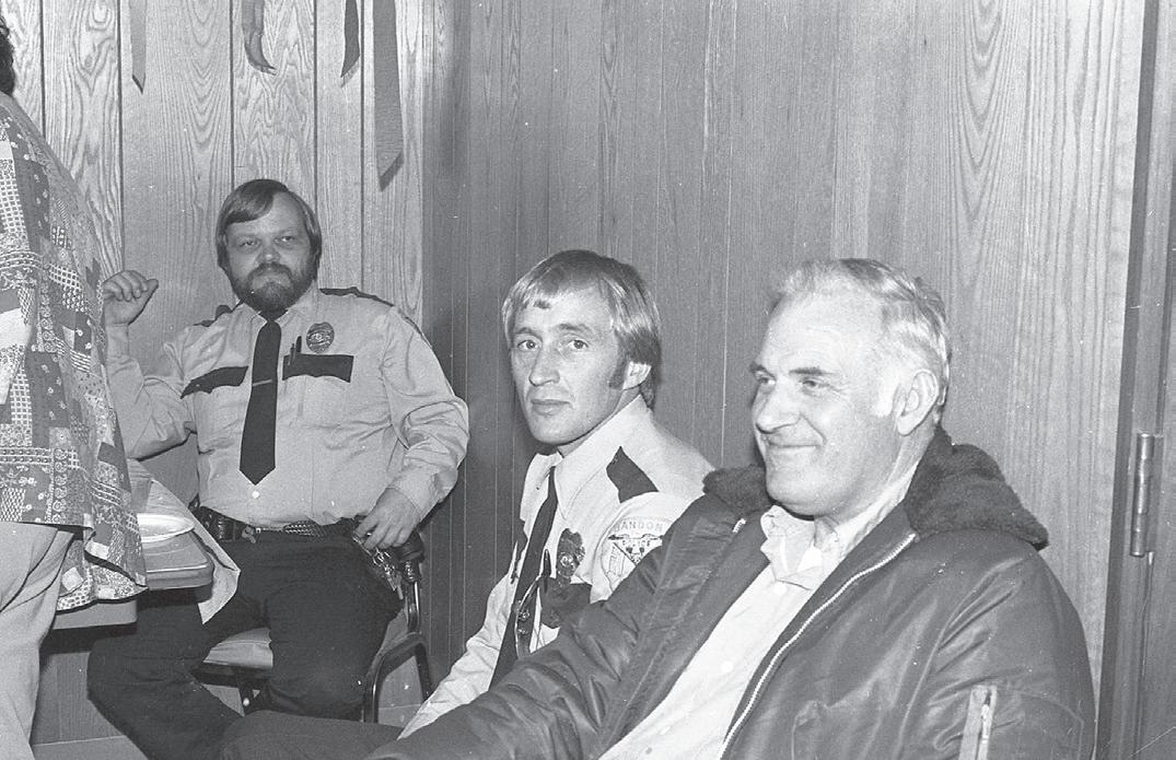 The third picture was taken in April of 1980 when members of the Bandon Police Department gathered at city hall for the retirement party of Officer Harry Franson. From left are Marc Johnson, Mike Trotter and Chief D. S. "Big Mac" MacDonald.
