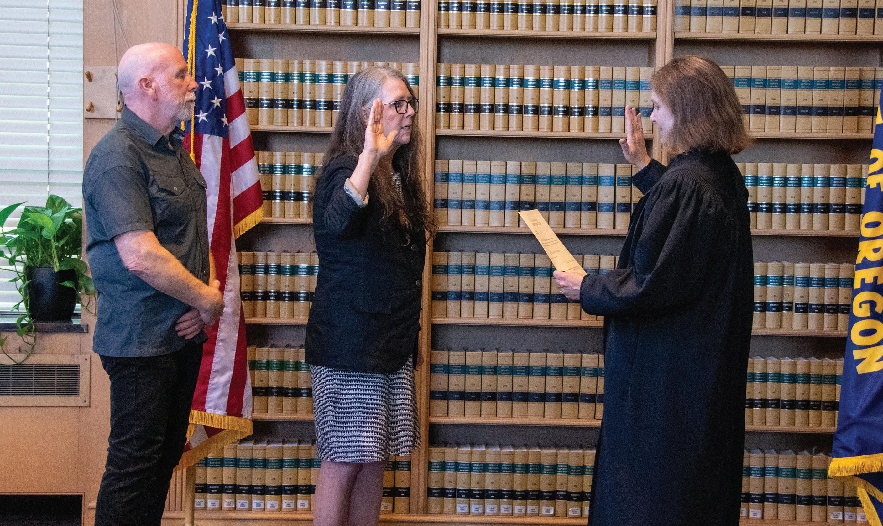 Oregon’s 29th Secretary of State, LaVonne Griffin-Valade, was sworn into office by Chief Justice Meagan Aileen Flynn at Governor Tina Kotek’s ceremonial office in the Oregon State Library. Secretary Griffin-Valade was joined by her husband, members of her family, Governor Tina Kotek and Acting Secretary of State Cheryl Myers.
