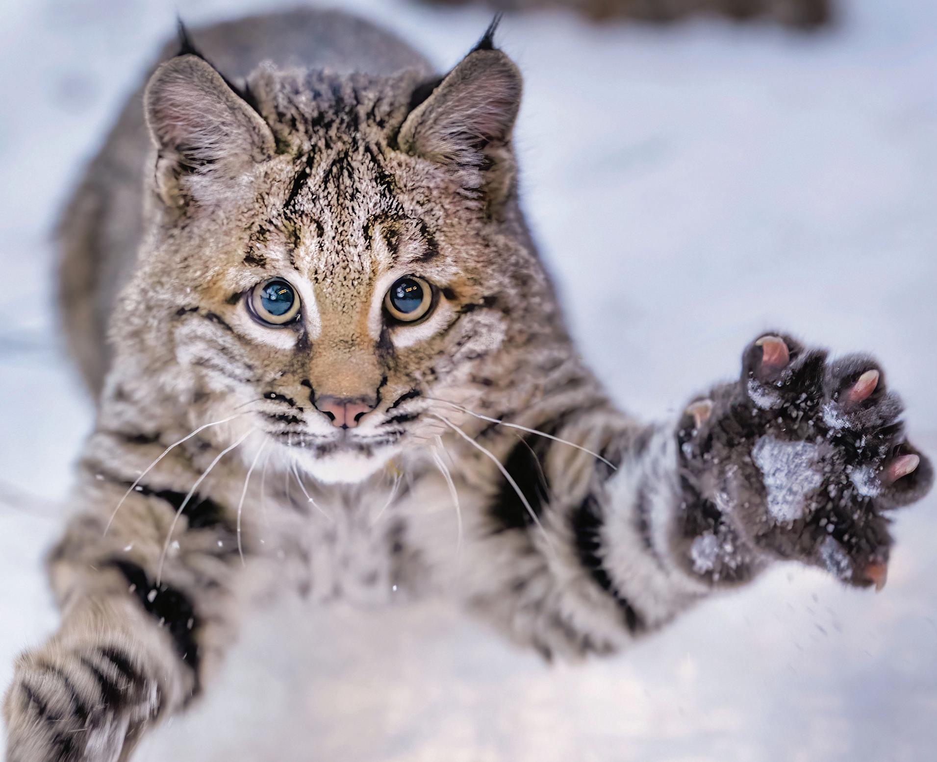 It will take nearly another year for the bobcat to reach a full size of 20-25 pounds. Wild bobcats eat a wide range of prey including birds and small mammals.