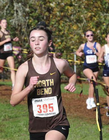 In the Class 4A girls race, North Bend’s Addison Horning earned a spot on the podium with a 10thplace finish and teammate Ellie Massey just missed the top 10. Horning finished in 19 minutes and 34 seconds, best among runners from the Sky-Em League. Massey was 12th in 19:38 and the Bulldogs were eighth in the team race, won by La Grande. Lauren Wolfe was 36th