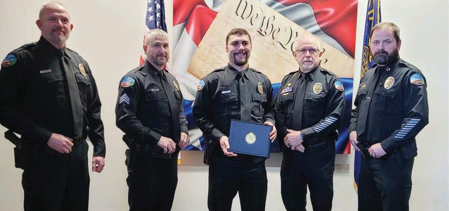 The North Bend Police Department congratulated Officer Aaron Mayo (center) on graduation from the Department of Public Safety Standards & Training’s 16-week Basic Police Academy on Friday, January 20. Attending the graduation was North Bend Police Officer White, Sgt. Perry, Chief McCullough, and Captain Mitts. Officer Mayo is the first of three new police officers to be sent to the academy. He returned to North Bend to complete two more phases of in-house training before heading out on patrol alone come April 2023. Contributed photo