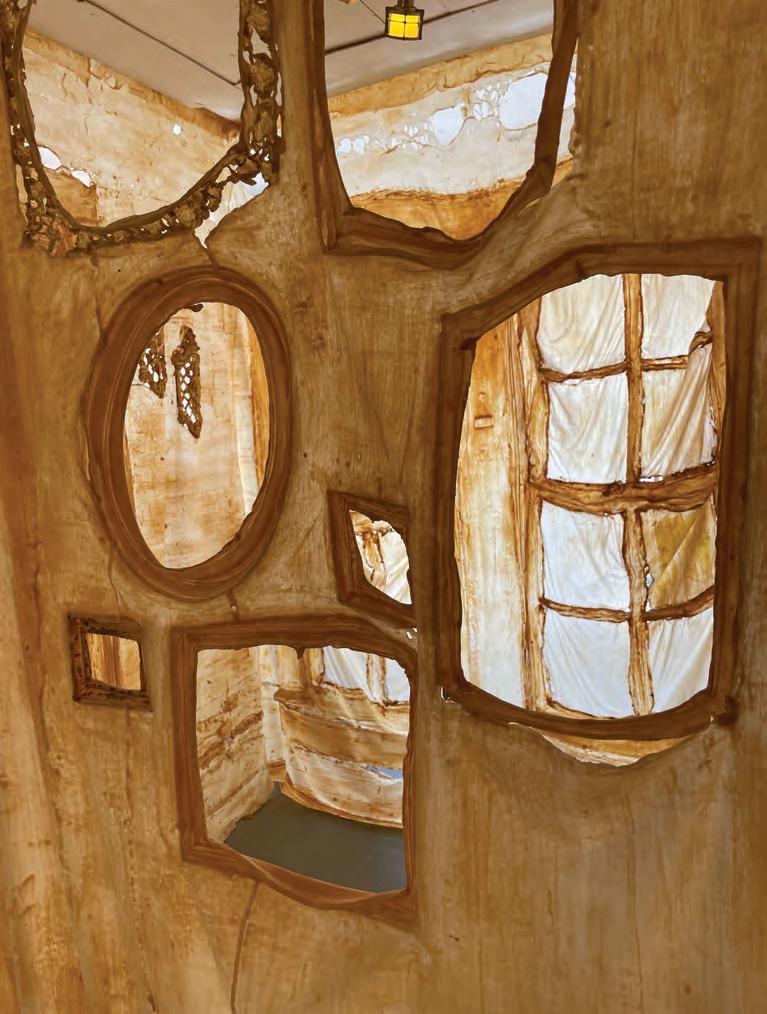 Carlie Trosclair.“Pentimento,” 2015. Hand cut conrete in an abandoned building. 10’ x 20’ x 2” Carlie Trosclair.“within|between,” 2022, latex. 9’x 9’x 9’