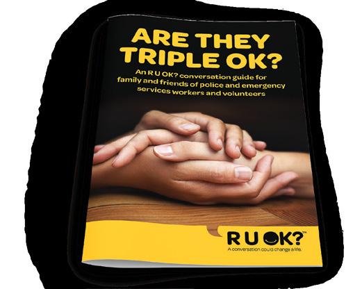 “If you notice someone isn’t themselves, trust your gut and check in. Most importantly, make sure you have enough time to really hear their concerns if they say they aren’t OK. It changed my life, and it could change theirs.” along with the free resources for police and emergency services workers and volunteers, as well as their family and friends. These include a conversation guide, a podcast and other personal stories.