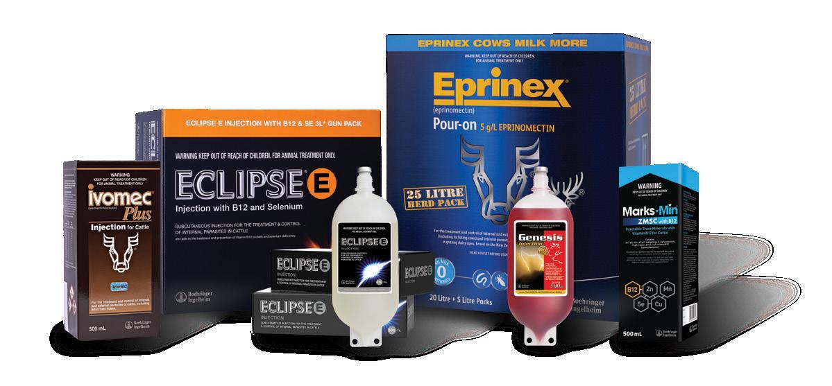 92 Country-Wide | APRIL 2023 PROUDLY AVAILABLE FROM YOUR LOCAL PARTICIPATING VETERINARY CLINIC. Boehringer Ingelheim Animal Health New Zealand Limited. Level 3, 2 Osterley Way, Manukau, Auckland, New Zealand. ECLIPSE®, EPRINEX®, GENESIS®, IVOMEC®, MARKS-MIN® are registered trade marks of Boehringer Ingelheim Vetmedica GmbH, used under license. Registered pursuant to the ACVM Act 1997. No’s A010640, A011151, A007191, A009888, A006481, A011687. © Copyright 2023 Boehringer Ingelheim Animal Health New Zealand Limited. All rights reserved. NZ-CAT-0021-2022.