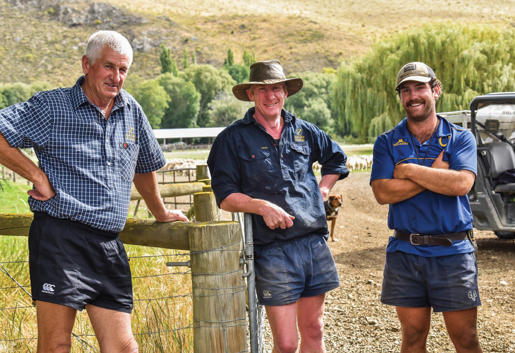 Top left: Haldon Station livestock manager Hamish Neal and farm manager Paddy Boyd. Top right: Worker accommodation at Haldon Station. Centre right: Bevan and Wendy Hopcroft's woolshed. Above: The Burke family at Puketira: Jess, Rob, Marie and Mat.