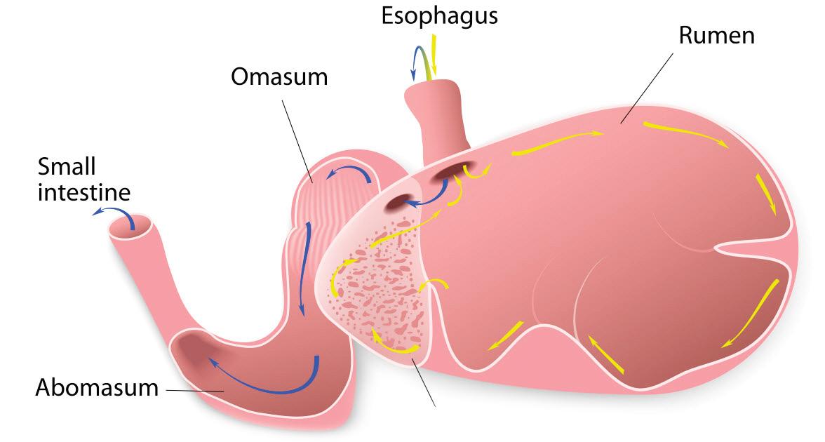 All the micro-organisms that digest the diet come with the forage, and they are all fairly particular to different food types. They flourish in the ruminant stomach because of the warm, wet environment, with a pH that suits them.