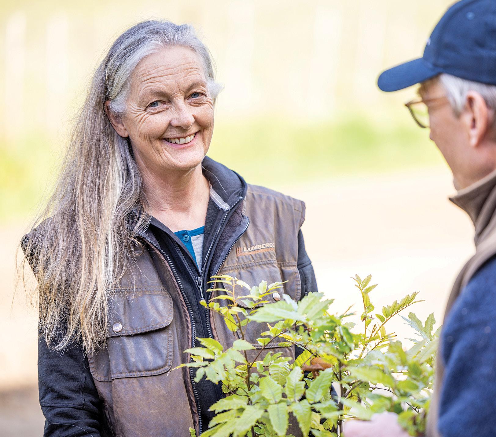From top left: Shirley-Ann and Rick Mannering inspect native seedlings raised on their Waytemore farm south of Auckland. Top right: Home-cut wood chips for stock bedding. Bottom: Yearling heifers on Waytemore.