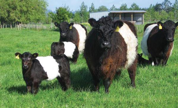 Galloways come in four breed types: belted, riggit, solid and white. They are a medium-sized beef animal, with a shaggy, double, weather-resistant coat which is one of its most distinctive characteristics. Cows breed easily with low birth weight calves, and are long-lived, excellent mothers and are naturally polled.