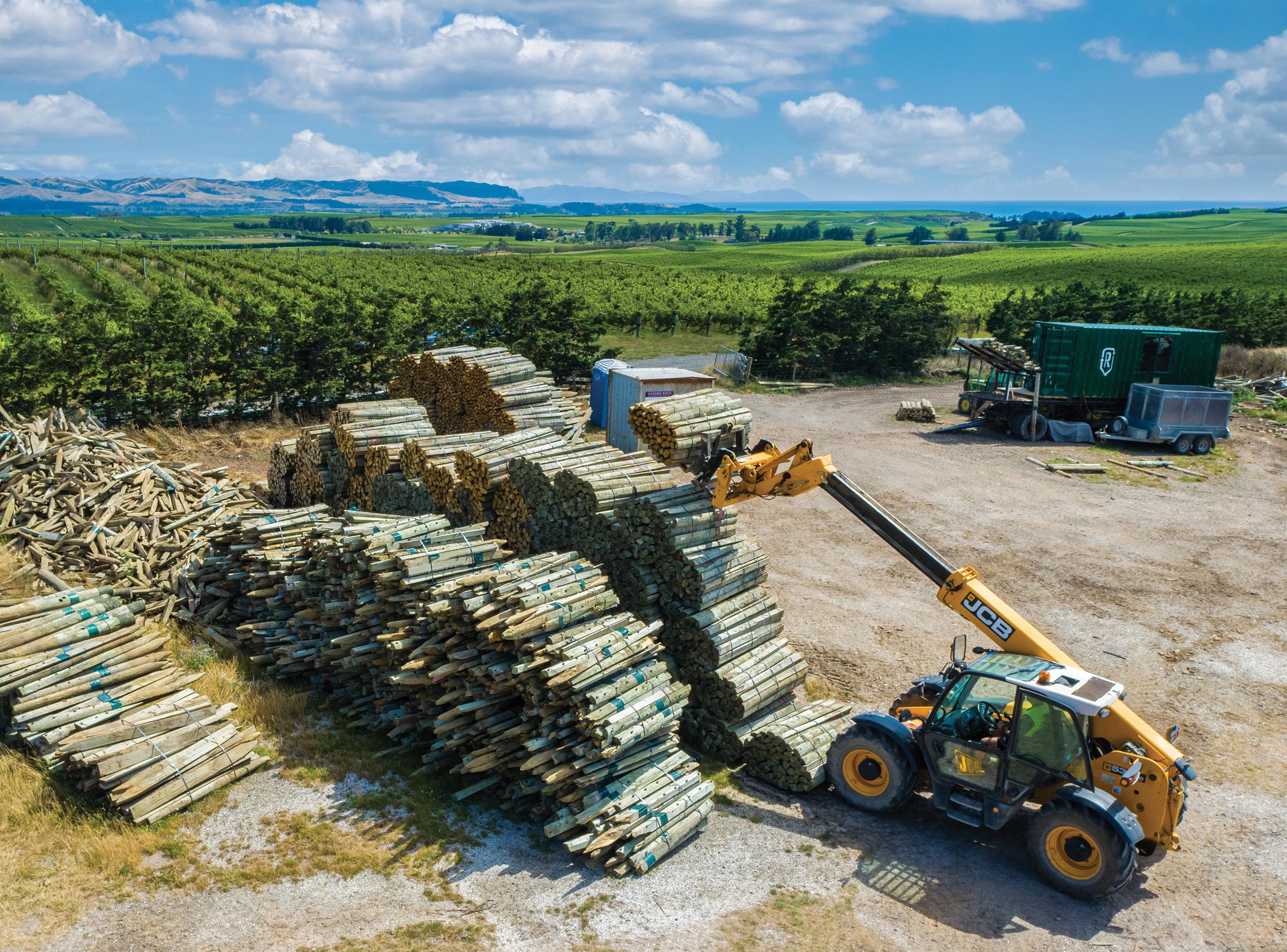 We sell H4 treated 1.6 or 1.8-metre length grade 1 posts. Being ex-vineyard posts ¼ rounds are 90-115mm and ½ rounds 140-175mm. You can have them pointed, but we mainly sell them docked. We then bundle them (1/4 rounds in 60s or ½ rounds in 50s) and sell them to farmers direct, nationwide. We have also recently added batten droppers at 800mm and 1.2m lengths.