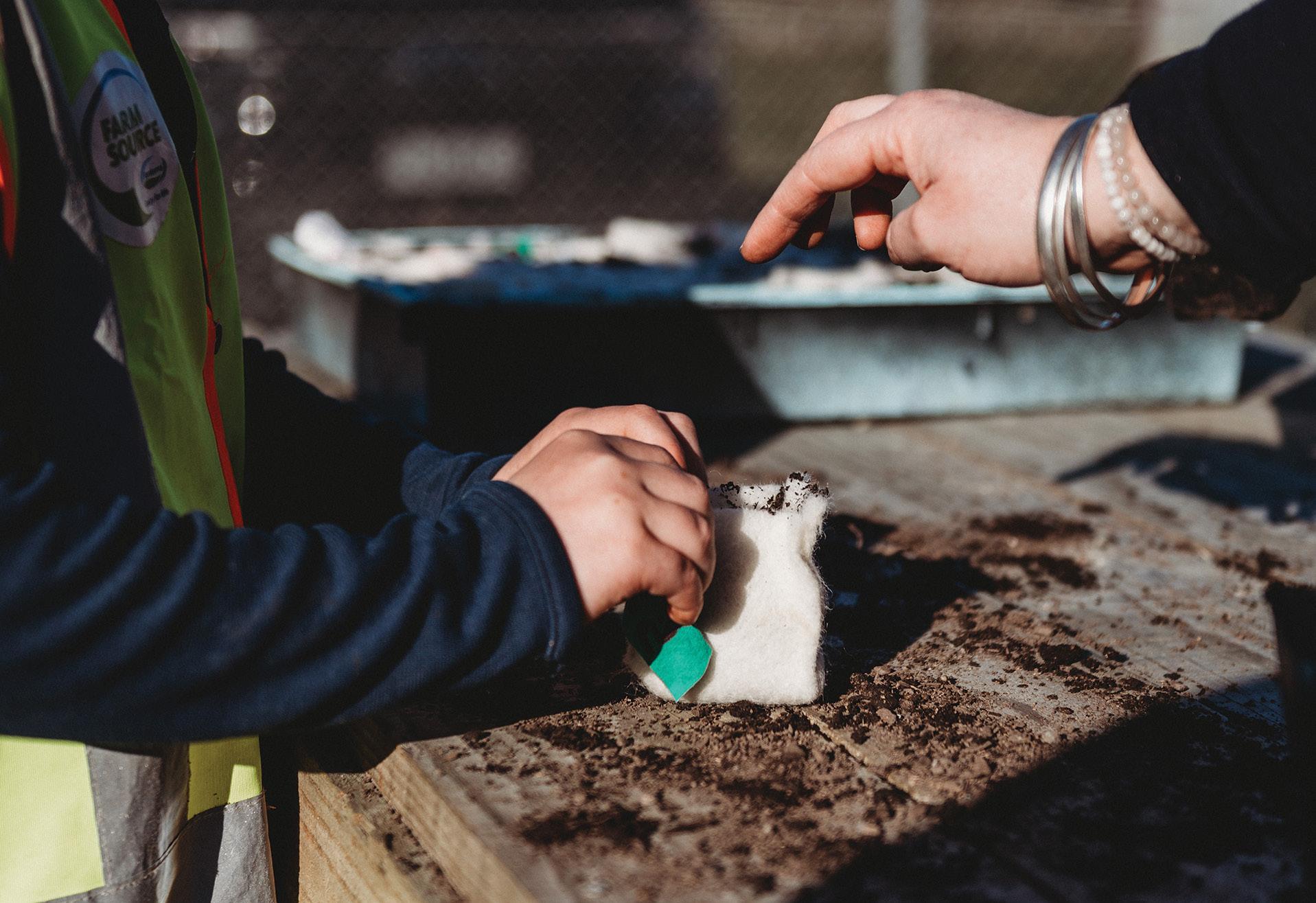 The lambs can be crutched, but only to the size of a hand’s palm, and a template is used to regulate that.