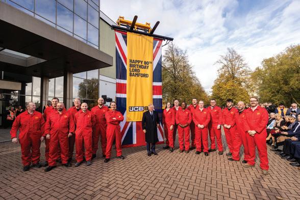 An action-packed day of double celebrations saw digger maker JCB mark its 80th anniversary – and the 80th birthday of company chairman Lord Bamford.