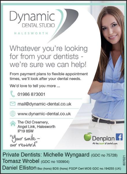 care, training programmes etc, and look forward to doing so much more to help those suffering from dementia and their families. If you'd like to know more about what we do, how we can help, or how to become a volunteer/ donor, please contact us via info@halesworthdementia. co.uk or go to our website: halesworthdementia.co.uk. You can also visit our Facebook page or call us on 07990 199632. On behalf of HDCF, I'd like to wish every one a wonderful Christmas and a very happy and healthy New Year! John Wood