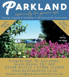 December 2022 MOTOR CARAVANNER 57 Leigham Manor Drive, Marsh Mills, Plymouth, Devon, PL6 8LL T: 01752 344 122 office@riversidecaravanpark.com www.riversidecaravanpark.com Level pitches • Electric hook ups • Premier pitches • Toilet blocks • Free showers • Laundry and ironing room • Dish washing room • Seasonal bar, restaurant and takeaway • Seasonal heated outdoor swimming pool & children’s pool • Games and TV room • Outdoor childrens’ play area • Calor gas sales • Reception with shop area • Motorhome service point Anchorage Caravan Park Brecon, Powys, LD3 0LD T: 01874 711246 W: www.anchoragecp.co.uk Hardstandings • H & C showers • Disabled room • Launderette Battery charger • Ice packs frozen • Elec hook-ups • Play area Shop • TV room • Hairdressers • Washing up • Family room Heated T/block • Bus stop • Nearby attractions OPEN ALL YEAR WWW.CLIPPESBYHALL.COM 01493 367800 Camping, Touring & Holiday Accommodation Visitors Welcome to BASECAMP, our Café, Bar and Restaurant CLIPPESBY HALL, HALL ROAD, CLIPPESBY, NR29 3BL 01829 760544 • booking@elmcottage.co.uk Little Budworth, Cheshire, CW7 2QJ www.elmcottage.co.uk • Rallies welcome • Award-winning amenities block • Disabled facilities • Wi-Fi • Shop • Elec hook-up • Hardstanding & grass • Nearby attractions • Close to pubs and walks • Motorhome service point • Children’s park • Self-catered chalet • Barn to hire • Wood-fired pizzas on Fridays (inhighseason) MID-WEEK OFFER Stay 2 nights, get the 3rd FREE! (low & mid season only) 01588 620011 www.mellingtonhallcaravanpark.co.uk info@mellingtonhallcaravanpark.co.uk Mellington, Churchstoke, Powys SY15 6HX 30 hard standing pitches with hookups set within 270 acres of beautiful parkland with many colour-coded walks. BRAND NEW modern shower block. Hotel/restaurant facilities on site. Children’s play area. Dogs welcome. Fishing available.