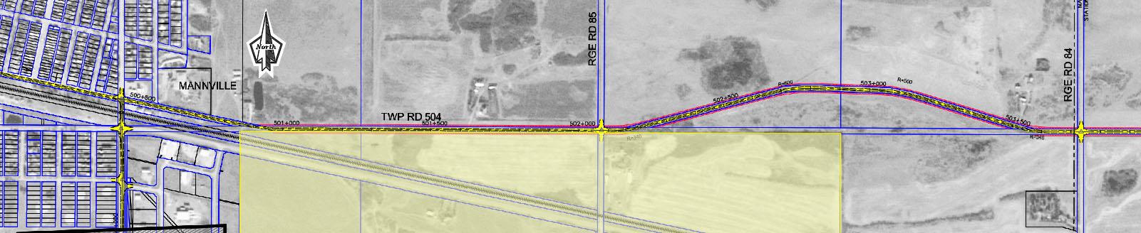 The ASP is serviced by Township Road 503B, locally known as Mannville Road, Township Road 504, and Range Road 85.