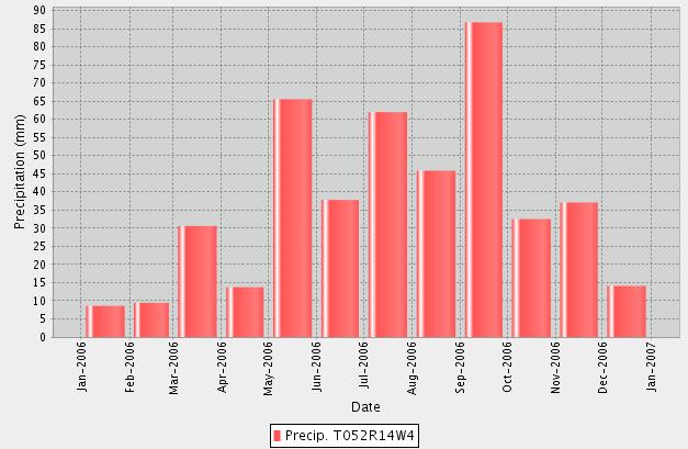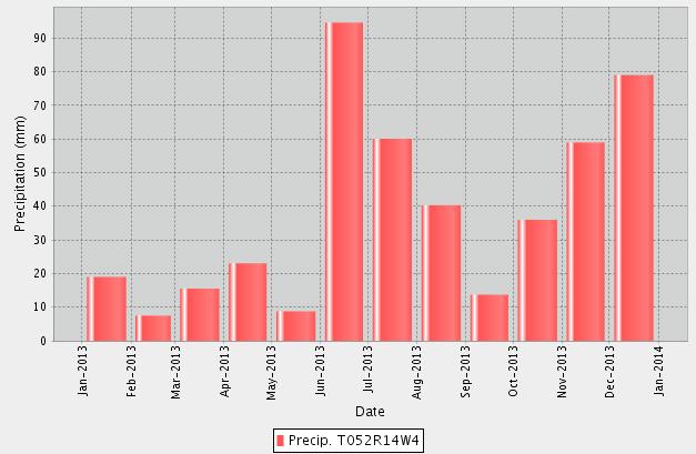 SWMF 2 has a peak elevation of 631. 25m during a 25mm 24-hour storm event simulation. This equates to a depth of 0.25m in the facility with a runoff volume of 15,728 m3, which is 11.6% of the dead storage capacity.