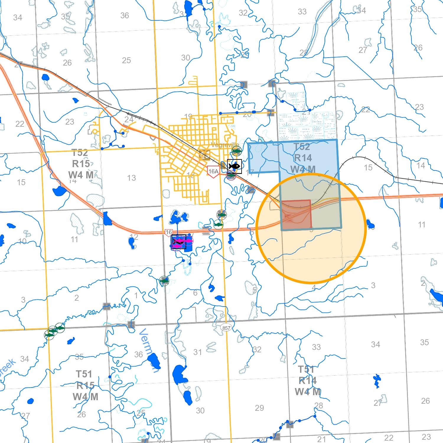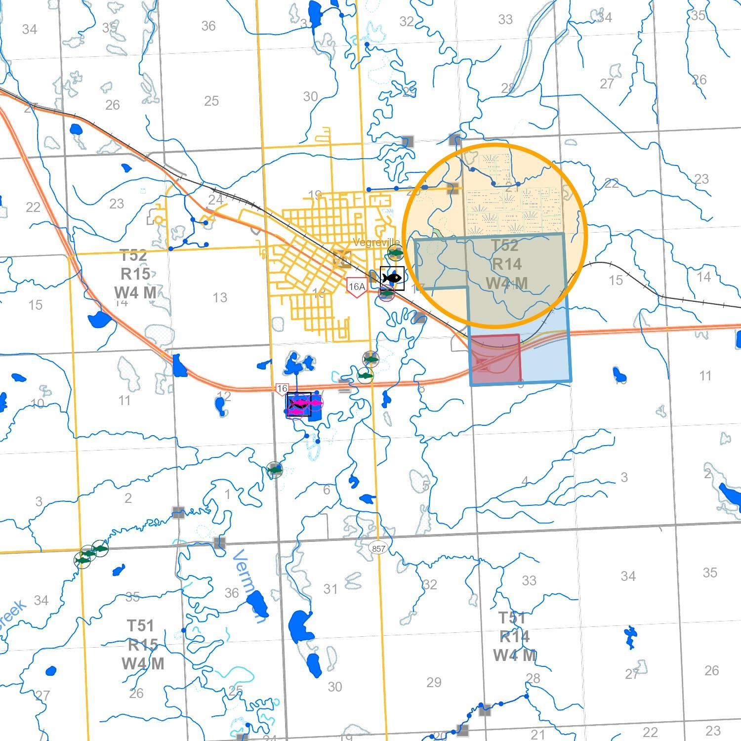 The2013 TownofVegreville-CountyofMinburnNo.27Intermunicipal DevelopmentPlan (IDP)identifiesSection16-54-14-W4,theNE17-5214-W4,partofSE17-52-14-W4northofHighway16,andpartofNWand NE9-52-14-W4northoftheCNRailright-of-wayforajointArea StructurePlan(ASP)project.