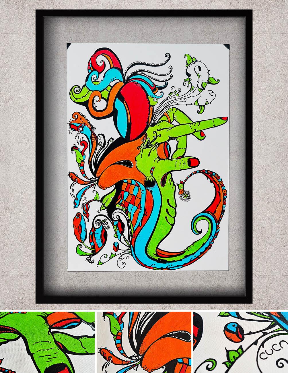 Artista originario de Recife, Brasil. Estudio comunicación social y artes visuales, sus obras muestran un paisaje mental libre, llenos de formas que se pueden distinguir con colores vibrantes, una expresión autónoma del dibujo, con un estilo que va de lo abstracto a lo surrealista sin caer en una escuela única, la calidad de la línea es firme y poderosa que origina formas únicas acompañadas de formas humanas reconocibles fácilmente, y una creatividad libre que comunican de alguna manera la confusión que se puede tener ante un problema, los cambios, las incertidumbres que producen, al mismo tiempo que transmiten cierta paz a causa de que muestran cierta armonía entre formas y colores que llevan al ojo del espectador a recorrer la imagen completa como un bucle en el cual, cualquier elemento visual puede ser el principio o el final de la composición, ya la que la jerarquización de las formas es uniforme mostrando ciertos recorridos que se quiebran, se bifurcan o continúan.