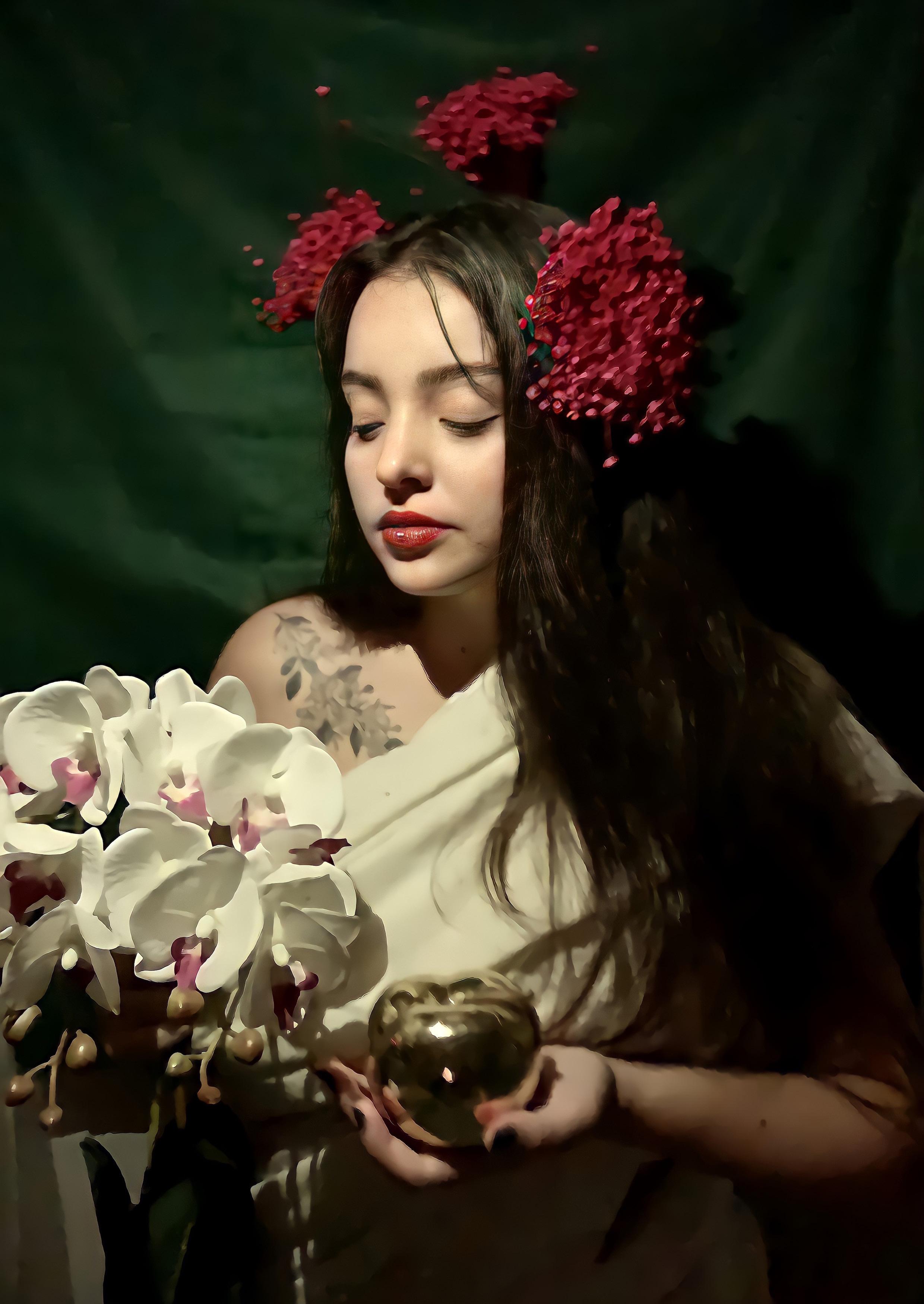 Artista originaria de Brasil, su trabajo se enfoca en la pintura y la fotografía como técnicas primarias para sus producciones artísticas. En su serie fotográfica muestra a las diosas griegas Perséfone, Artemisa y Deméter, en la cual se puede contemplar la fantasía que alude al mismo tiempo a la belleza y a lo prohibido, en el que la imagen femenina a la vez que representa la belleza, la fuerza, el misterio y la sensualidad, cuenta de manera sintética la historia de estas divinidades griegas, que si bien son hijas de Zeus tanto Perséfone como Artemisa fueron raptadas por dioses lujuriosos que las deseaban y ellas no les correspondía, Deméter madre de Perséfone y diosa de la fertilidad, que su historia muestra los lazos de amor de una madre hacia su hija y lo que esta es capaz de hacer cuando una hija o hijo es arrebatado de su lado. Si bien estas divinidades en la antigua Grecia muestran lo femenino, también hablan de la violencia que sufrieron por ser mujeres y hermosas que, en la representación fotográfica de Andréira aparecen con el cabello suelto, expresan que estos mitos de estas mujeres son actos reales y se siguen viviendo día a día por miles de mujeres en todo el planeta.