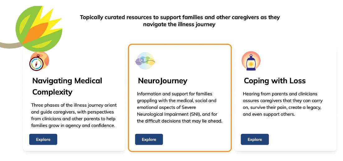 The answer came in the form of NeuroJourney, CPN’s digital resource designed around anticipatory guidance. NeuroJourney, launched in 2023, is dedicated to the needs of families of children with Severe Neurological Impairment (SNI). The content is presented in a diagram (or journey map) of phases that might occur as neurological impairment progresses. The content reviewers included clinicians and editors who painstakingly considered not just facts, but also tone and the typically unspoken aspects of caregiving.